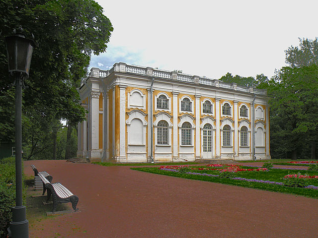 Каменное зало входит в состав дворцово-паркового ансамбля "Ораниембаум", который находится в Петродвоцовом районе Санкт-Петербурга, точнее в городе Ломоносов. Это павильон начинается у Большого Меншиковского дворца и Катальной горкой.